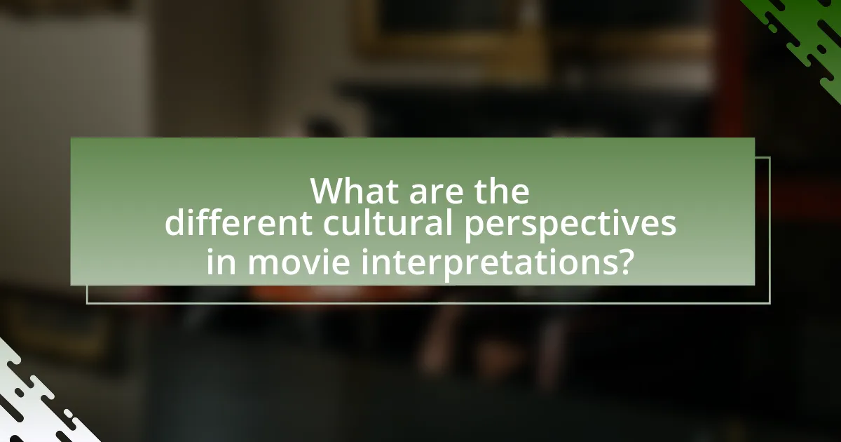 Different cultural perspectives in movie interpretations include individualism versus collectivism, varying moral frameworks, and distinct narrative structures. Individualistic cultures, such as those in the United States, often emphasize personal achievement and self-expression, leading to interpretations that focus on character development and personal journeys. In contrast, collectivist cultures, like those in many Asian countries, prioritize community and social harmony, resulting in interpretations that highlight group dynamics and familial relationships.
